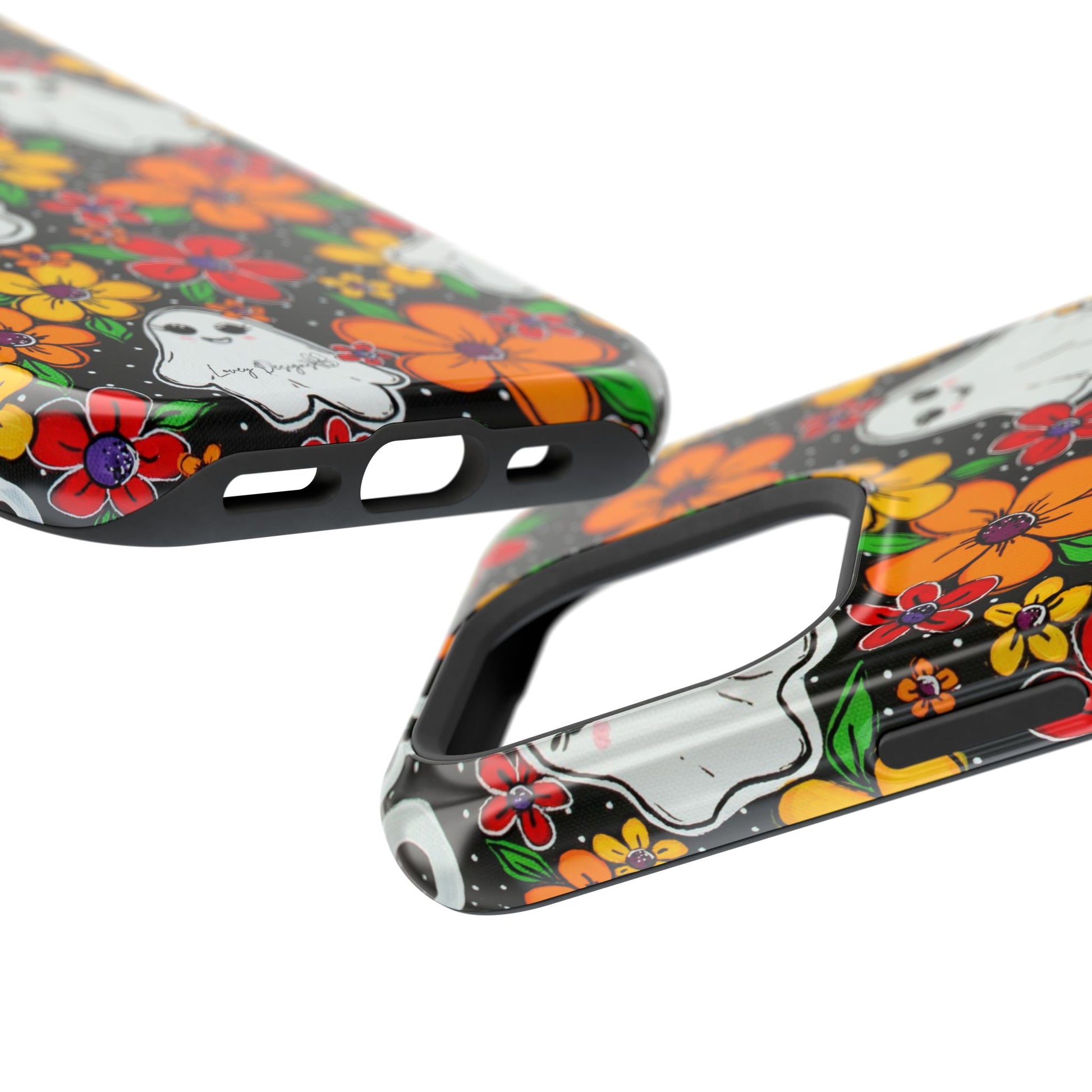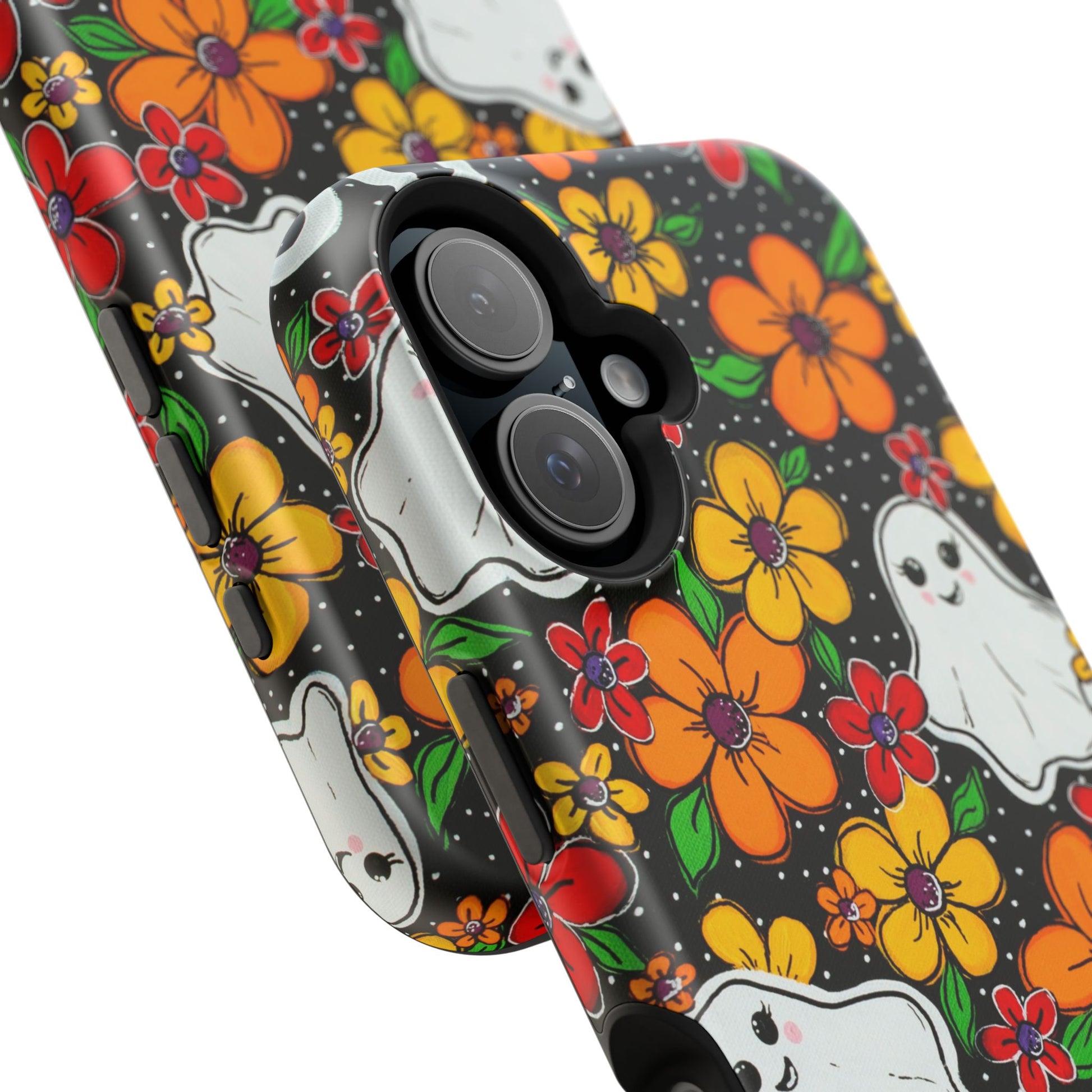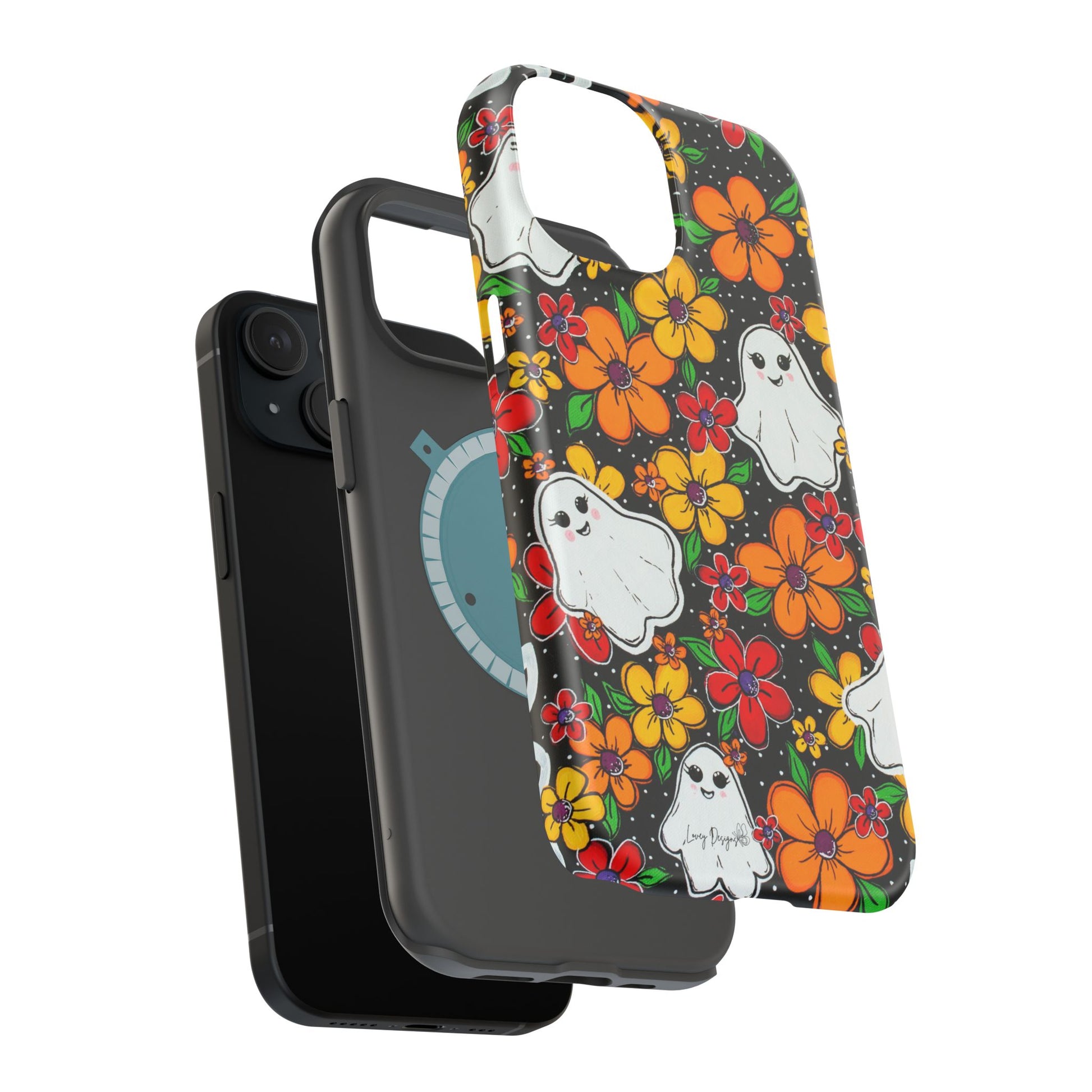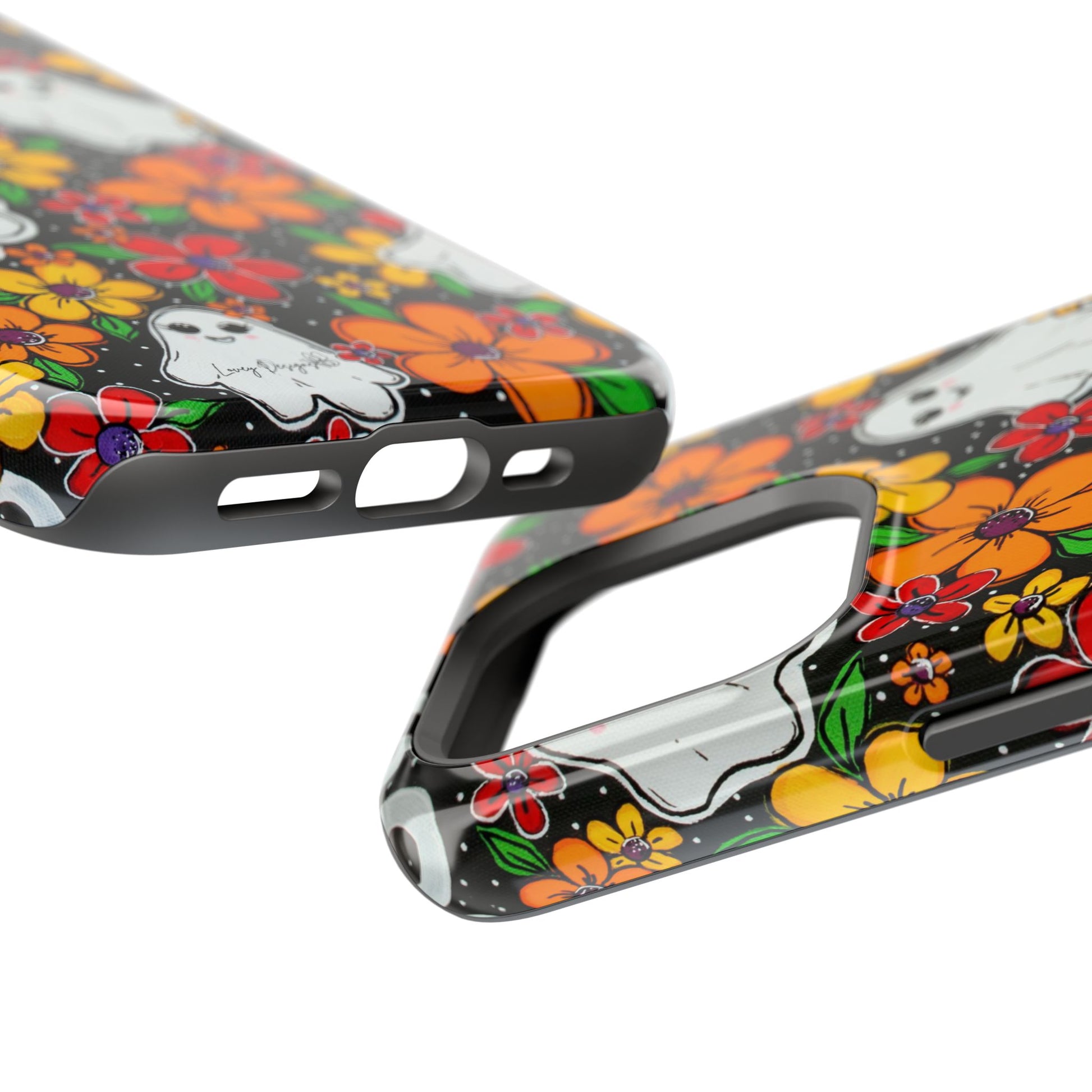 Halloween Phone Case with Ghosts and Flowers Design - Phone Case