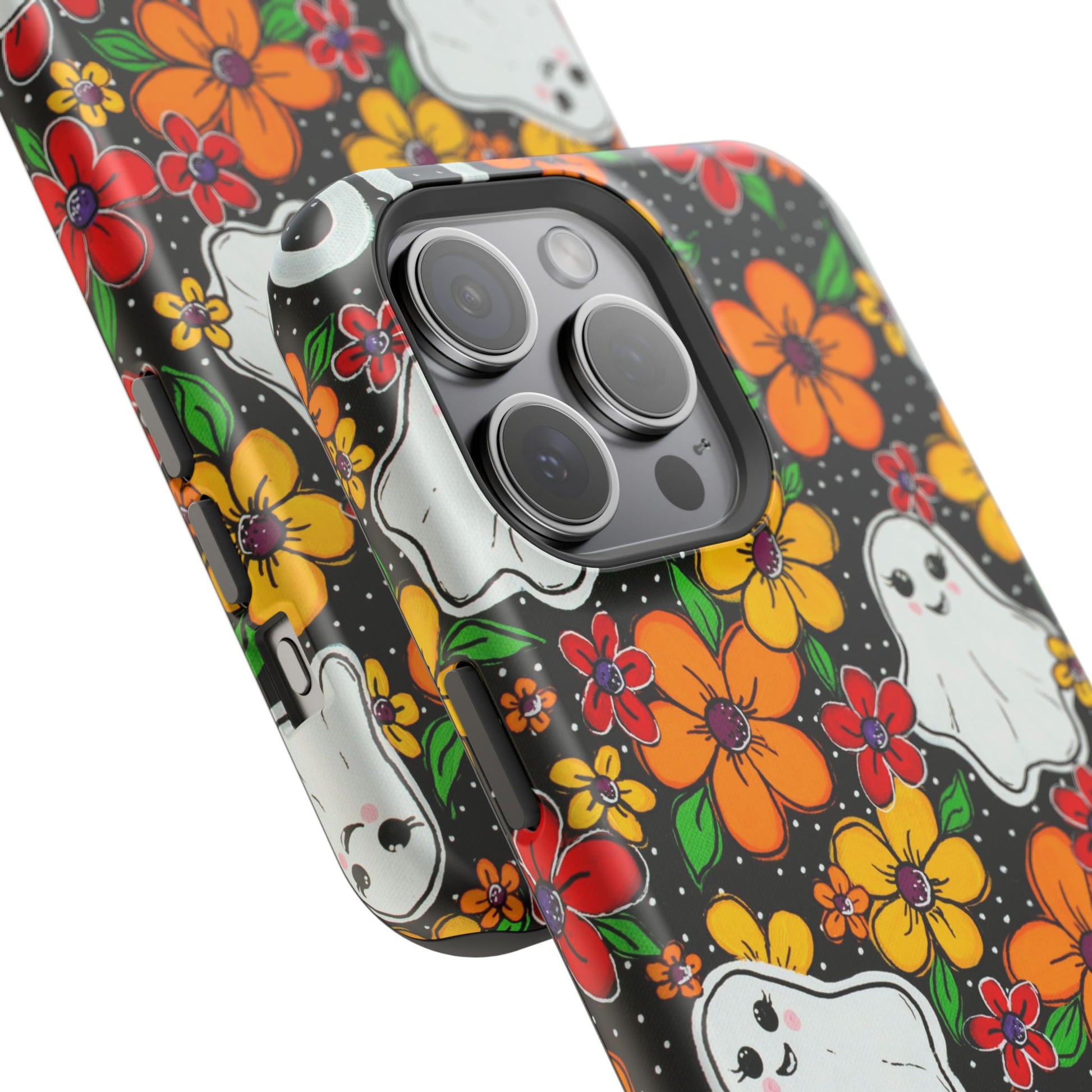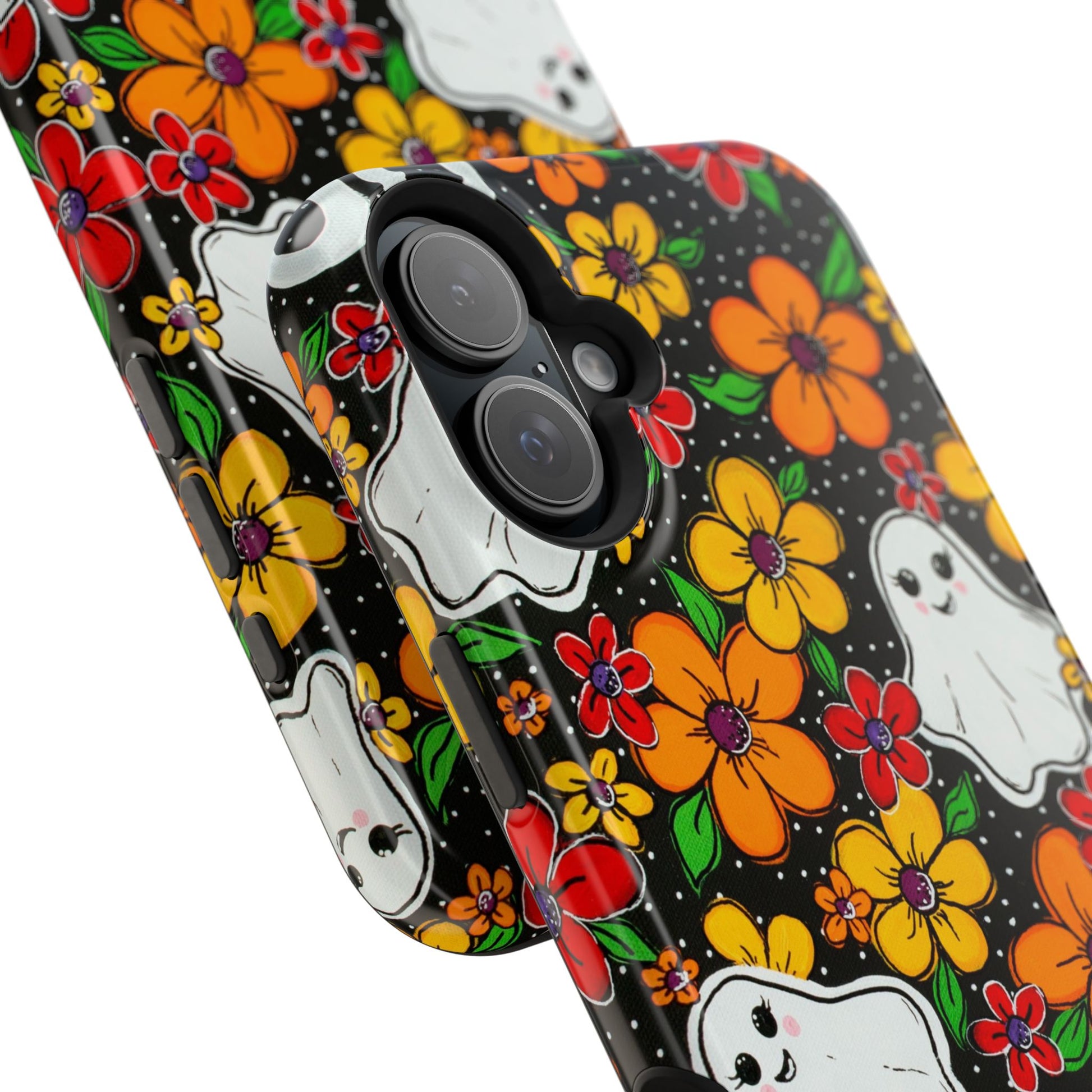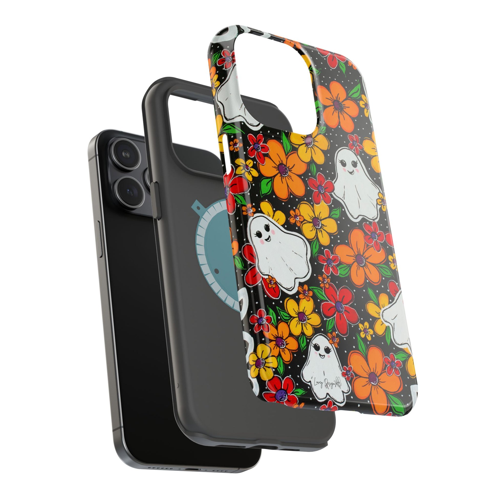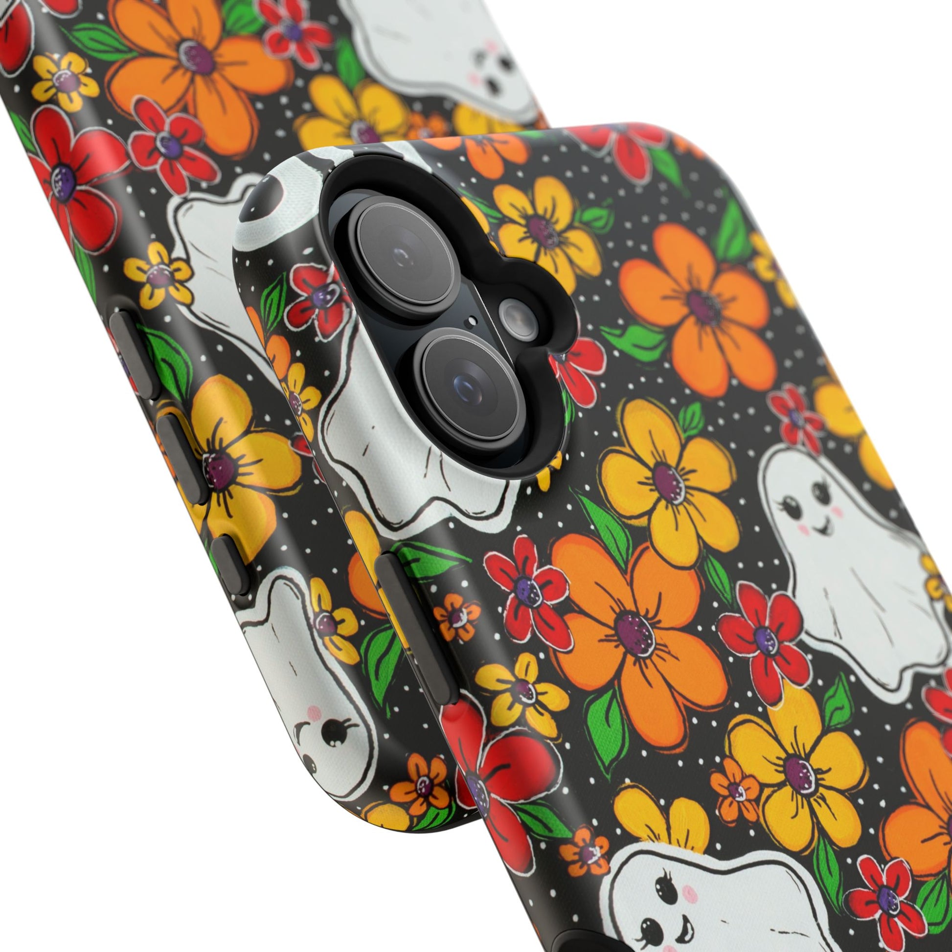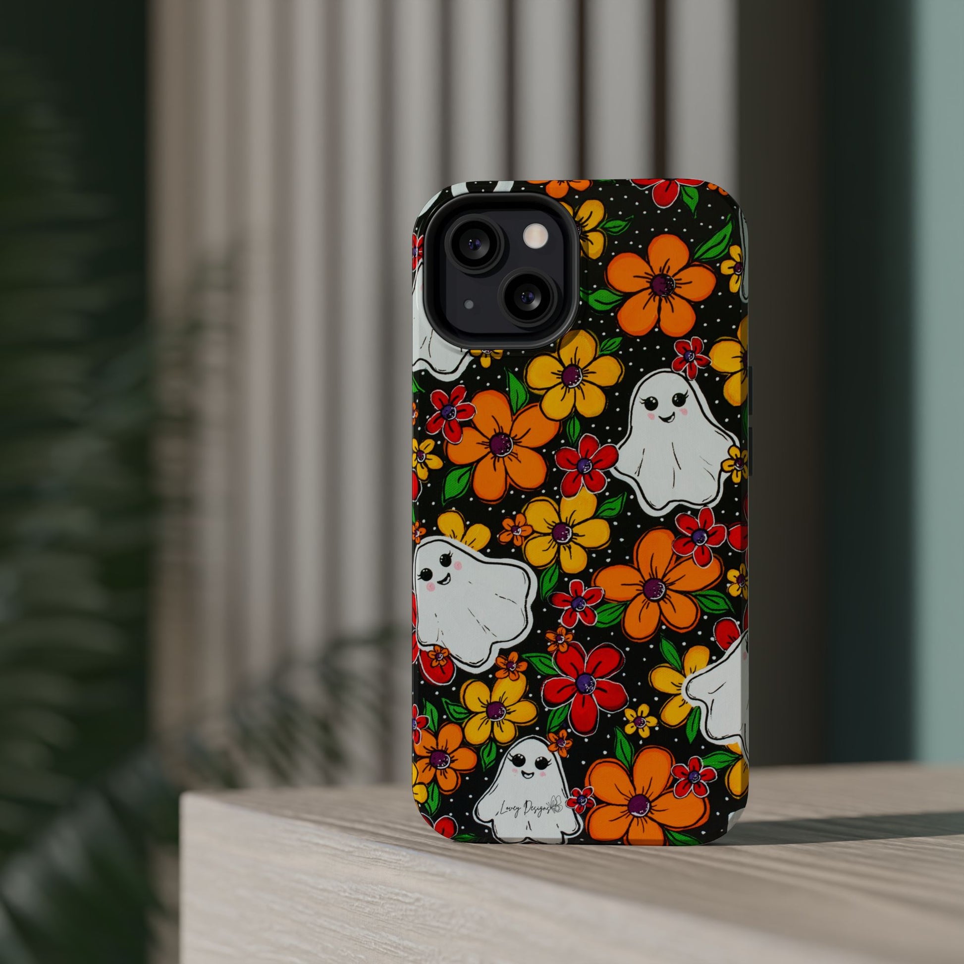 Halloween Phone Case with Ghosts and Flowers Design - Phone Case