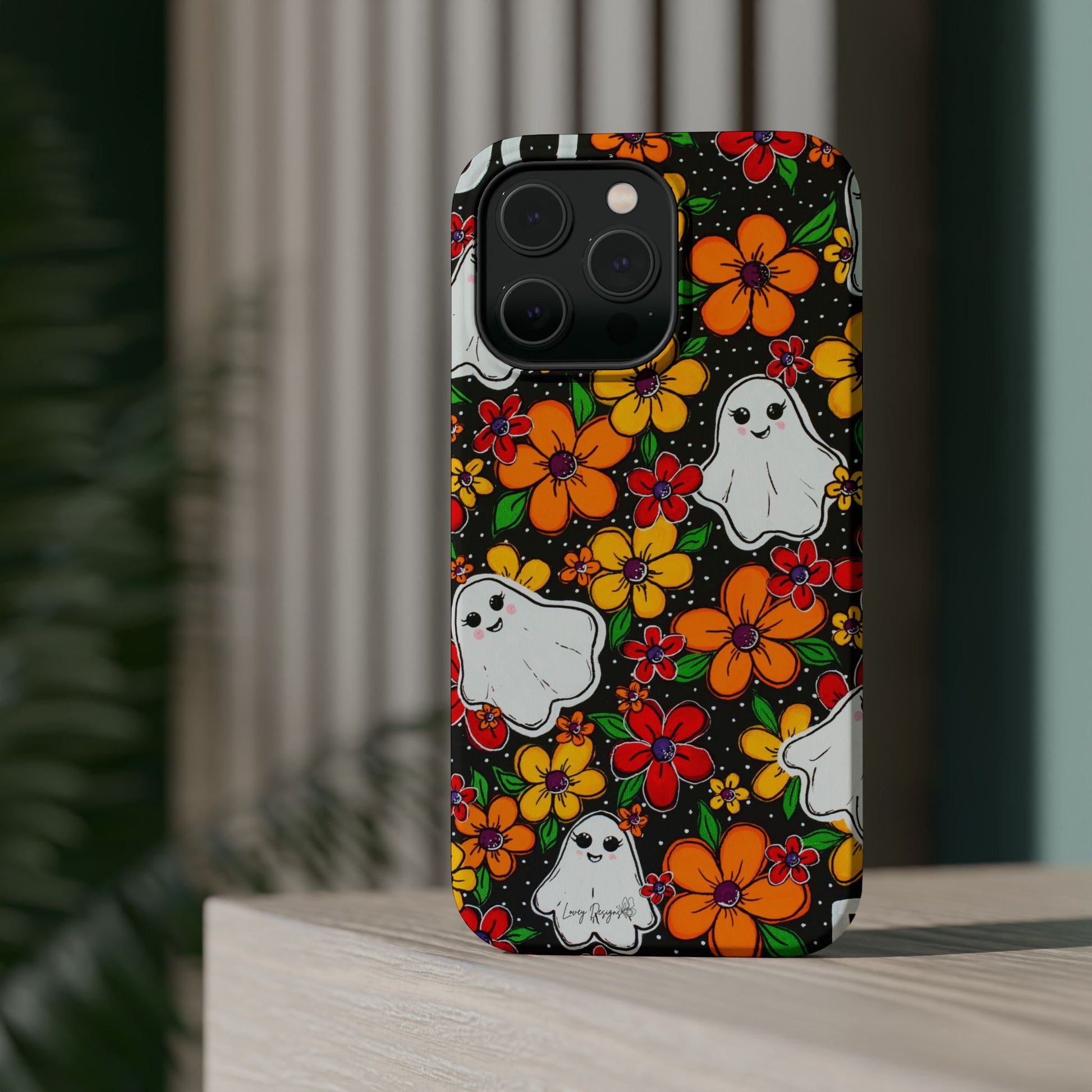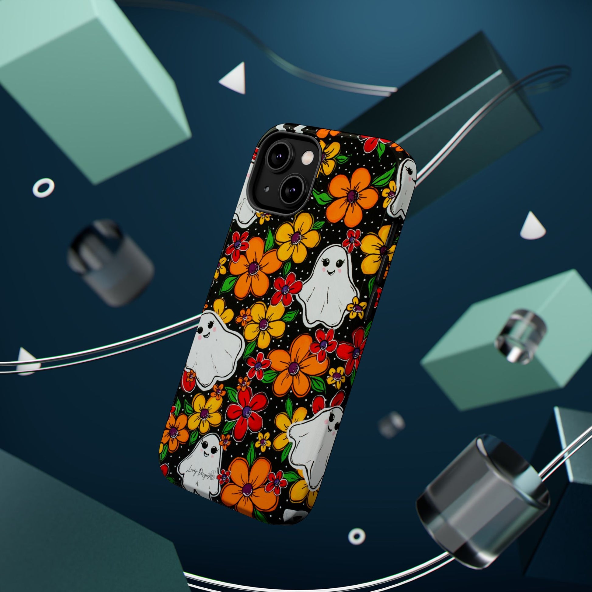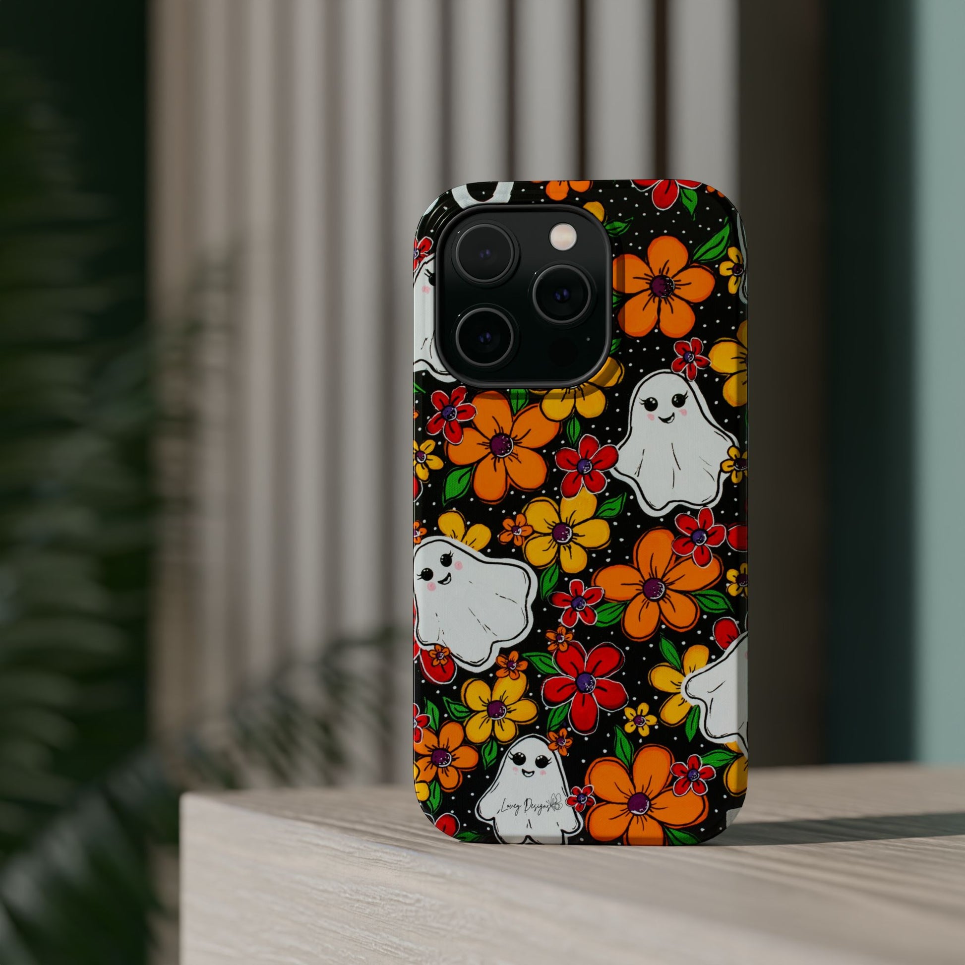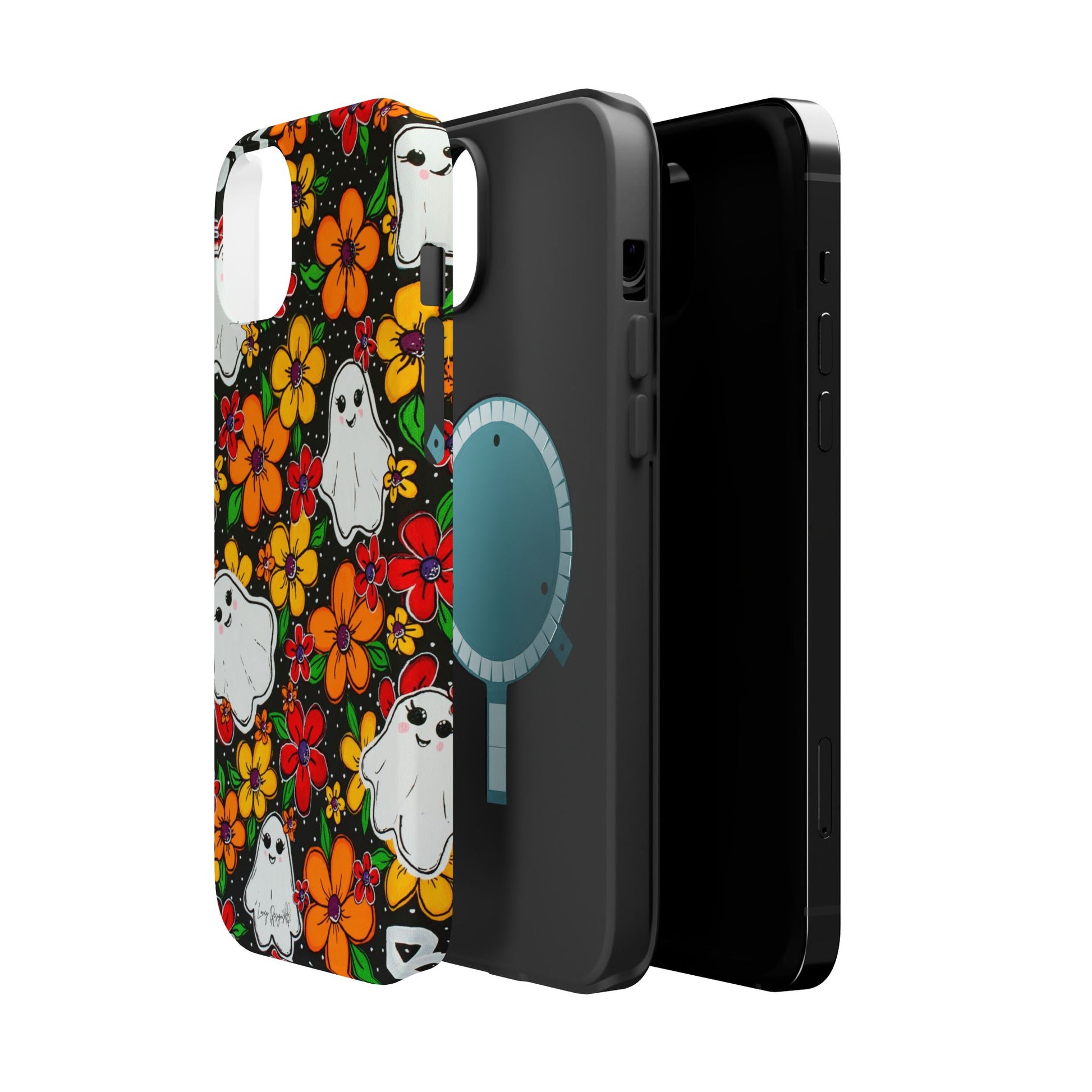 Halloween Phone Case with Ghosts and Flowers Design - Phone Case