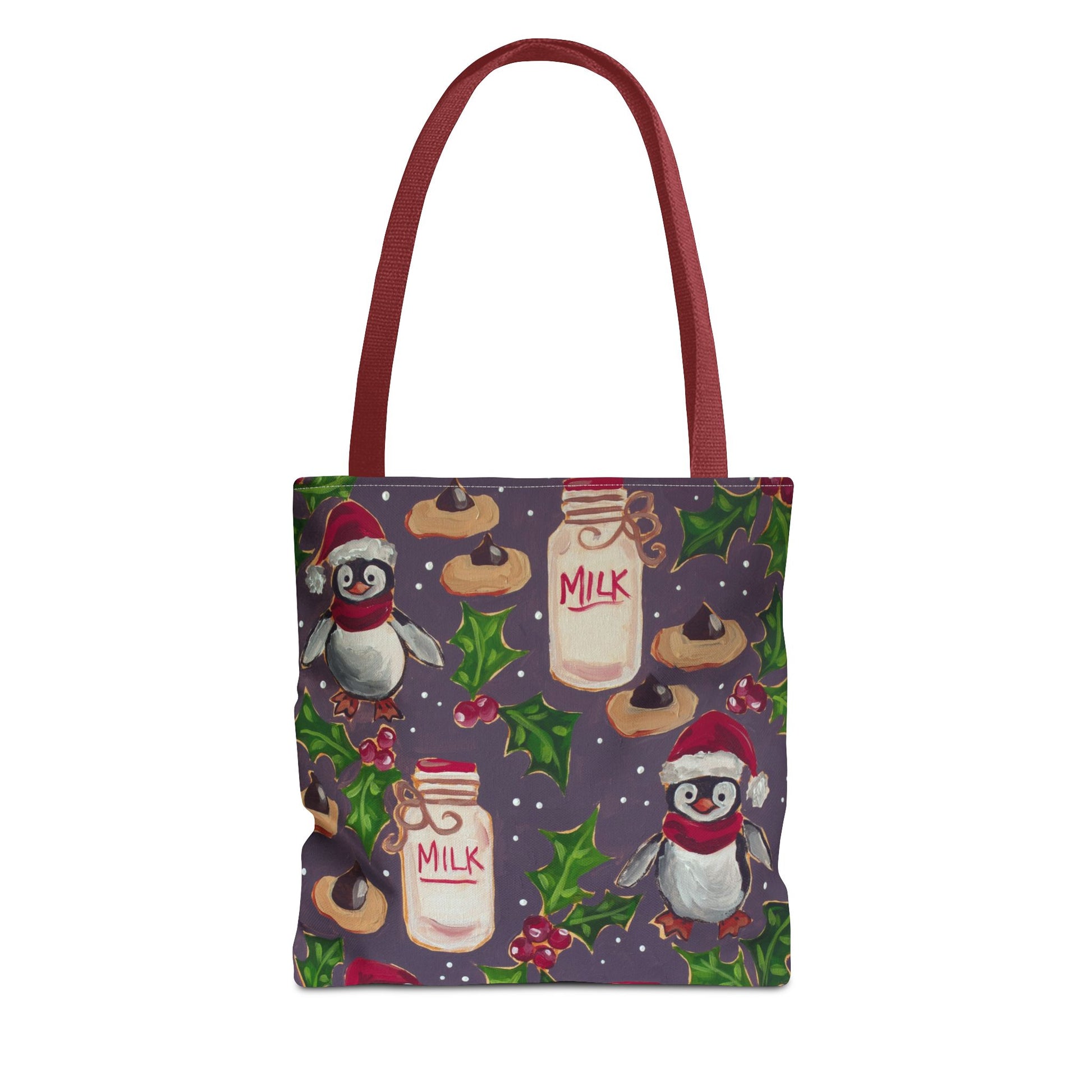 Carry a little winter delight wherever you go with this penguin cookie party tote. Reinforced handle stitching and a laminated interior mean it stands up to repeat use, from holiday cookie runs to neighborhood gift exchanges. Choose a handle color that matches your mood and size up when you need extra room. It feels festive without shouting, like a warm cup of cocoa shared on a brisk morning walk.